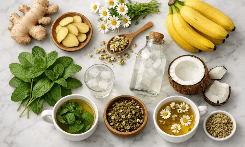- Nausea or stomach bug → ginger tea, BRAT diet, coconut water